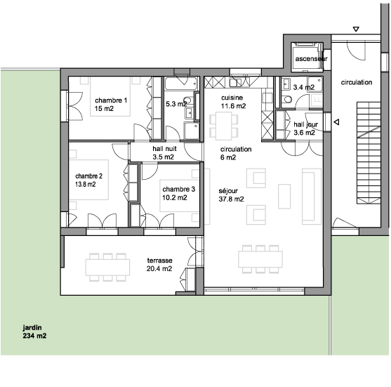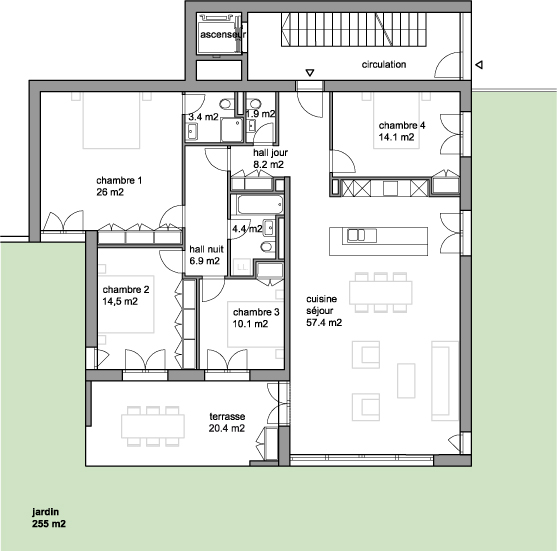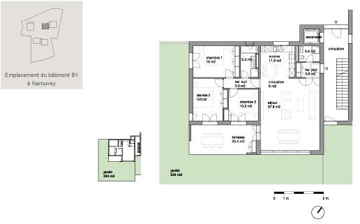 Chaque immeuble dispose de 3 appartements spacieux, répartis sur 3 niveaux et desservis par ascenseur. Dans cette petite copropriété de 15 appartements de qualité vous choisirez entre un rez-de-chaussée et son jardin privatif ou un appartement à l'étage et son magnifique balcon en loggia aux dimensions généreuses. |