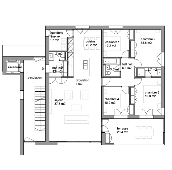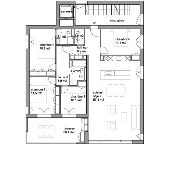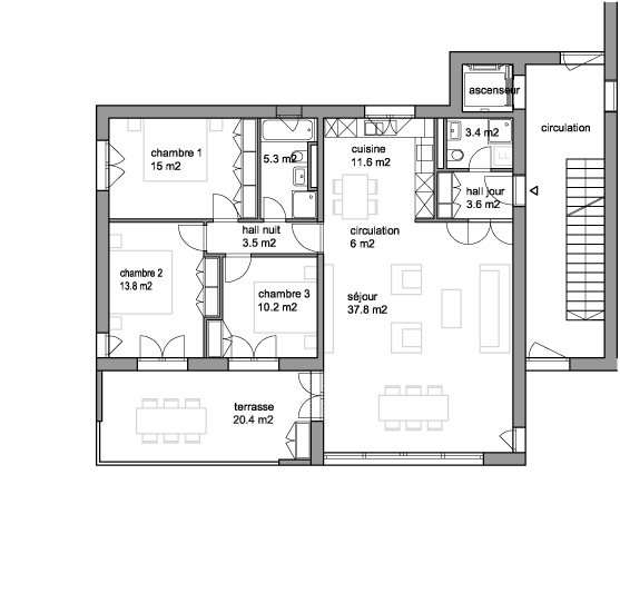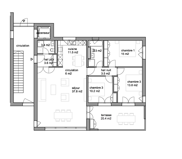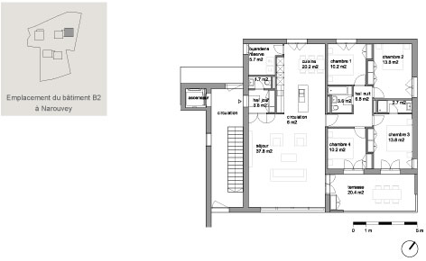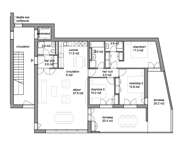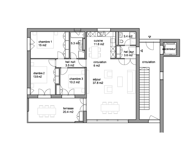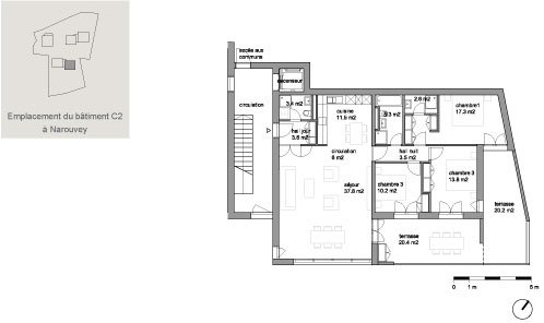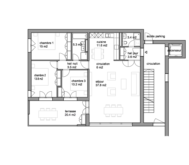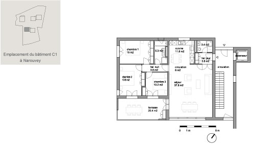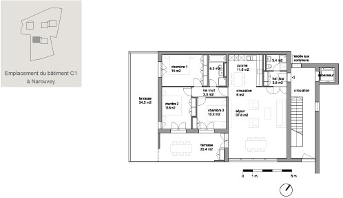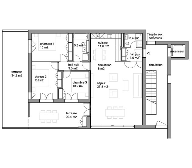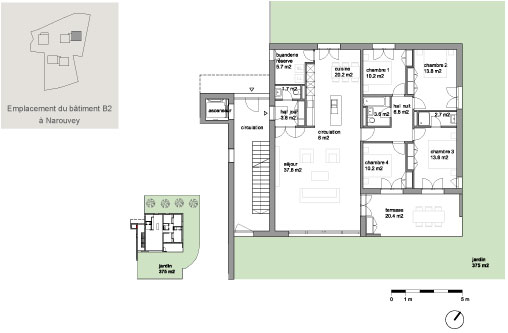 Un espace de convivialité, d'une surface de plus de 80 m2, ouvert sur une grande terrasse et doté d'un équipement de cuisine, est prévu à l'usage des habitants de la copropriété. |